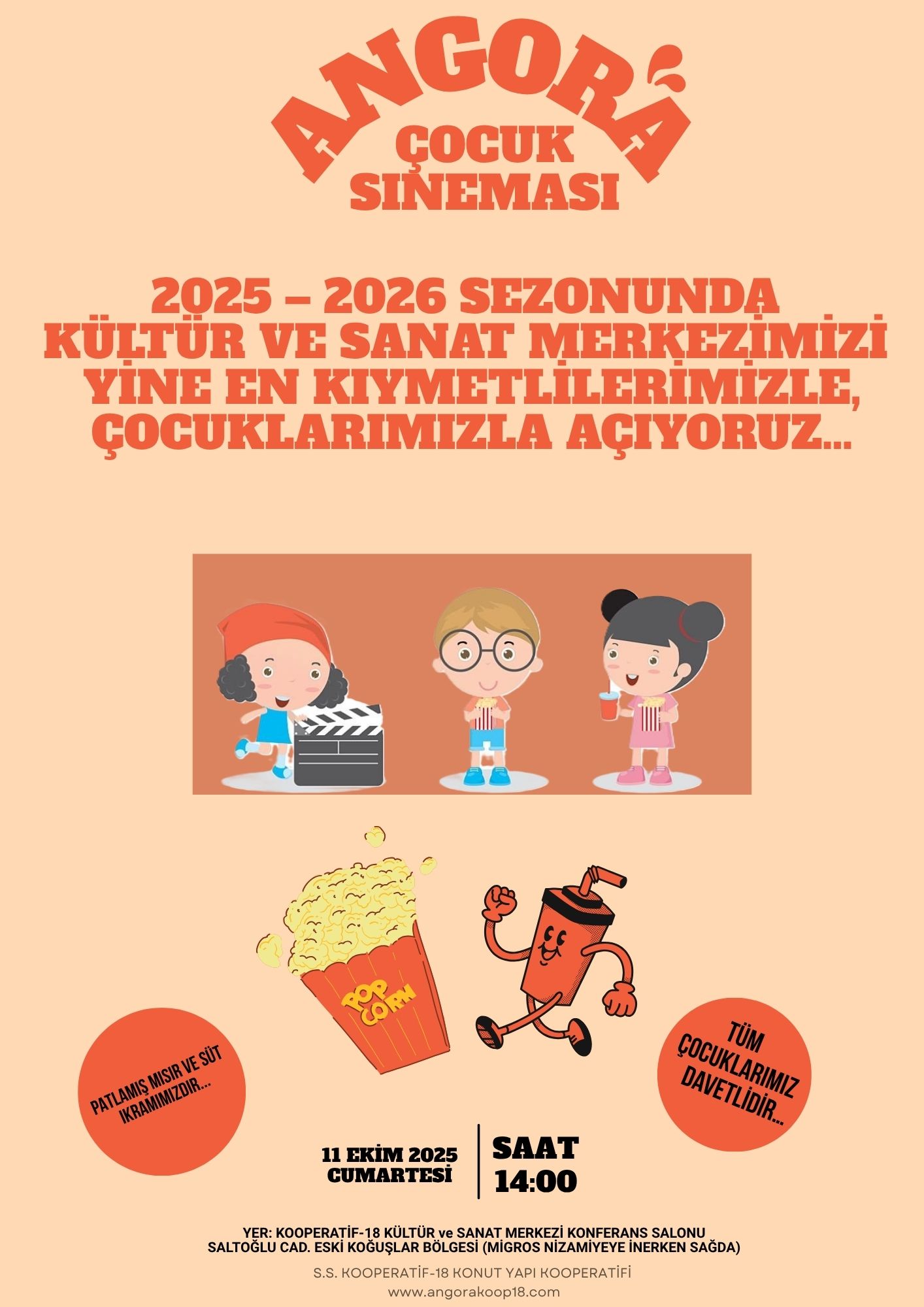 Kooperatif – 18 Kültür ve Sanat Merkezi ev sahipliğinde düzenlenecek olan “Çocuk Sineması” etkinliğine tüm çocuklarımız davetlidir.